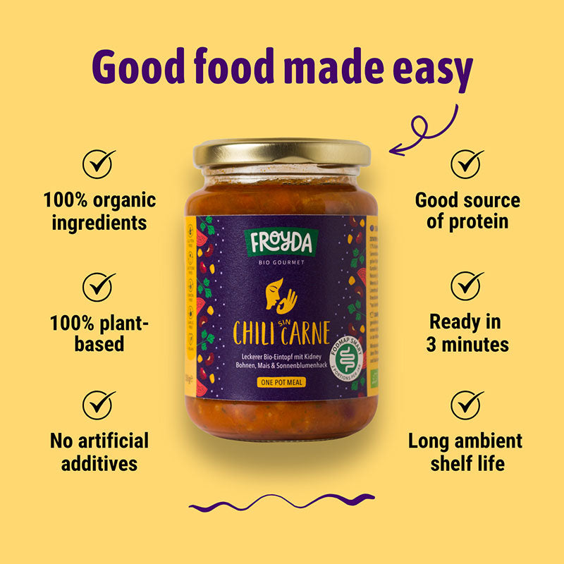 Many thanks for your wonderful feedback on our new Chili Sin Carne! 🙏 ❤️ It's great to know it was easy to prepare and gentle on your stomach – that's exactly what we aim for!